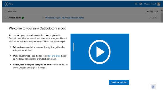 4. Tadaaaa, your email account at Hotmail has become. The next step you can click on the "Continue to inbox" to see your email page.